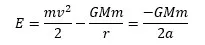 Where r is the distance to the center of the planet from your spacecraft, a is semi-major axis, G is gravitation constant and together with M which is mass of the planet they represent standard gravitational parameter μ.