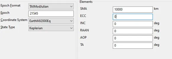 This is an awful lot of math that must be redone every time you want to change the starting or final orbit. And that is why we will now look at how to do this in GMAT. Our first step is setting up our initial orbit: